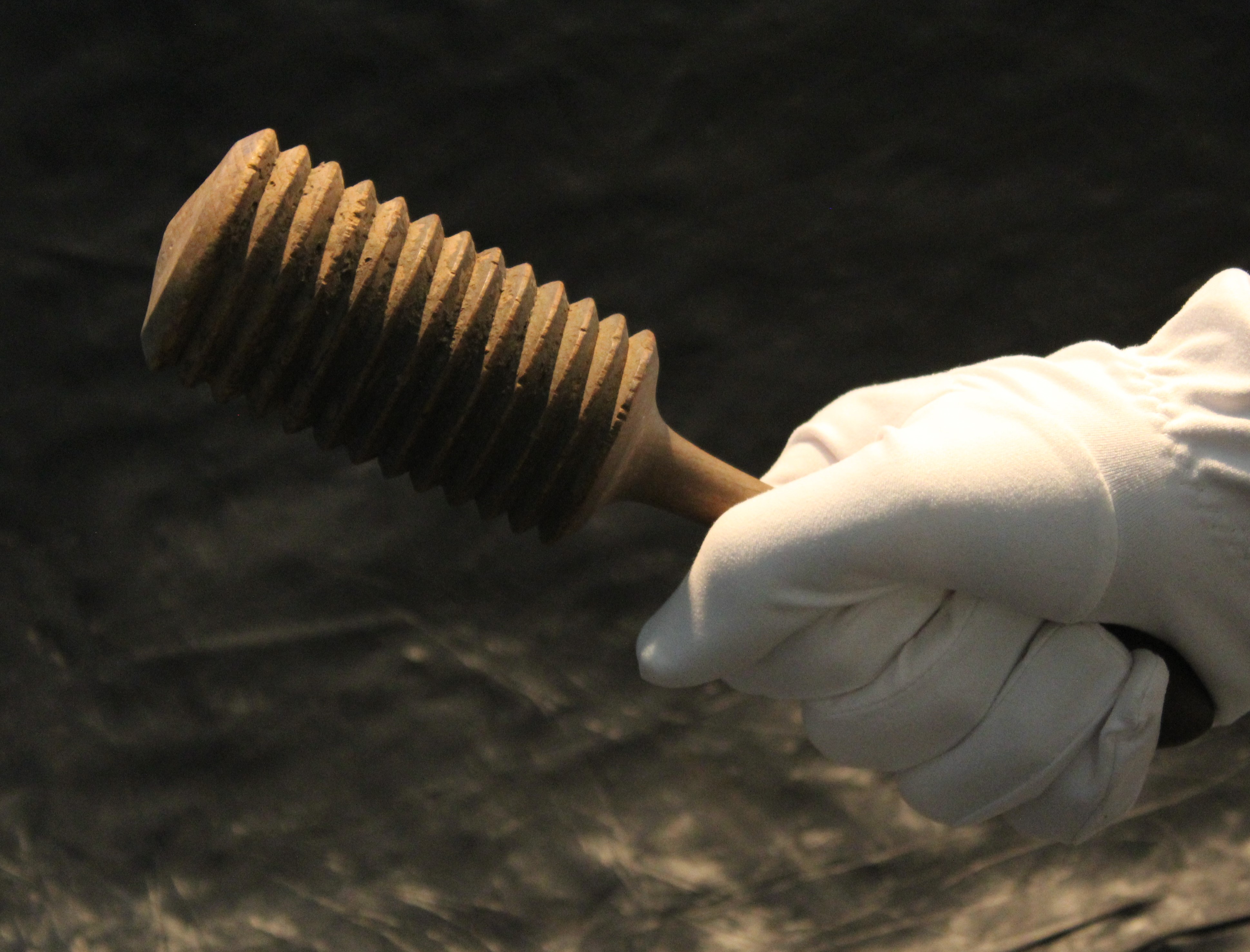 This item at Smith’s Tavern is a wooden masher used for potatoes and also cookie design. The masher head is grooved for the mashing of potatoes as well as for rolling in cookie dough.